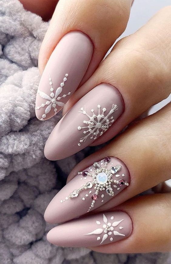 - Winter Nude Snowflake Nail Art.